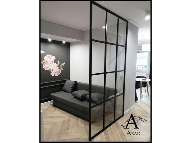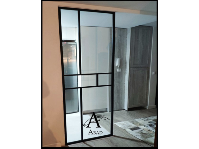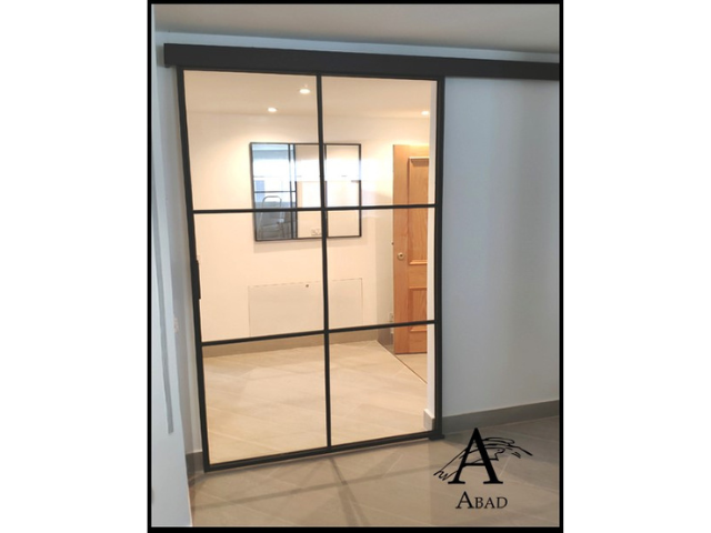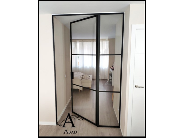 Funciona como puerta abatible, corredera o panel fijo, creando divisiones ligeras sin perder espacio.